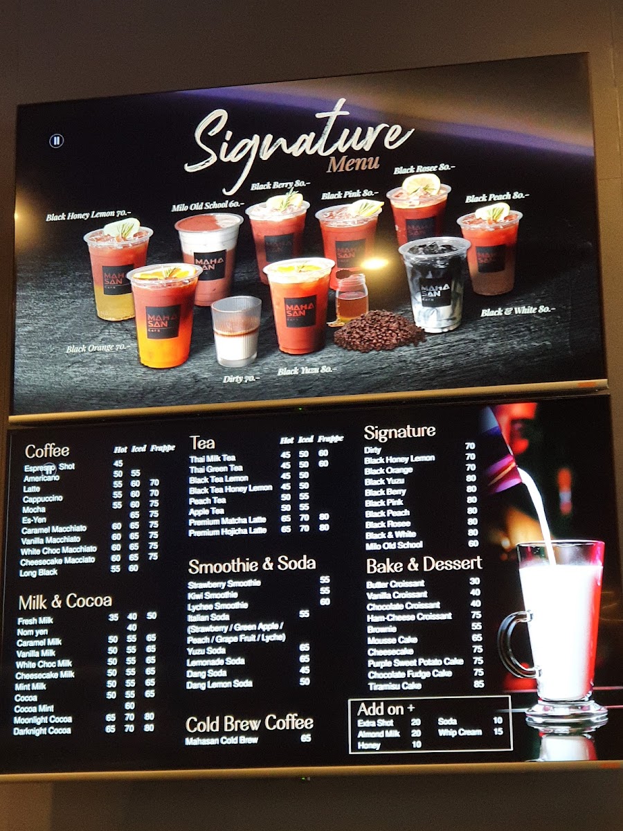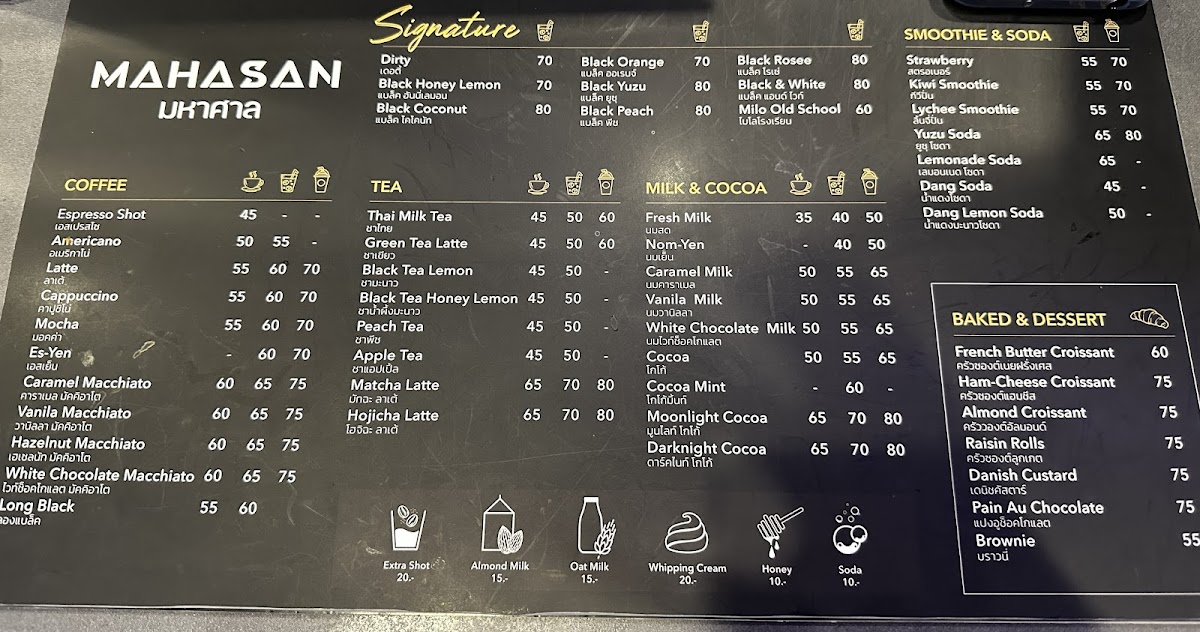 Moreover, the ambiance plays a significant role in the Mahasan Cafe experience. With a spacious parking lot and chill lo-fi music, it’s the perfect spot whether you're looking to unwind or get some work done, as noted by Wischapas Pimm-achsorn. The extensive menu boasts a variety of drinks and desserts, ensuring there's something for everyone. Whether you're a coffee aficionado or a sweet tooth, the options are plentiful.
